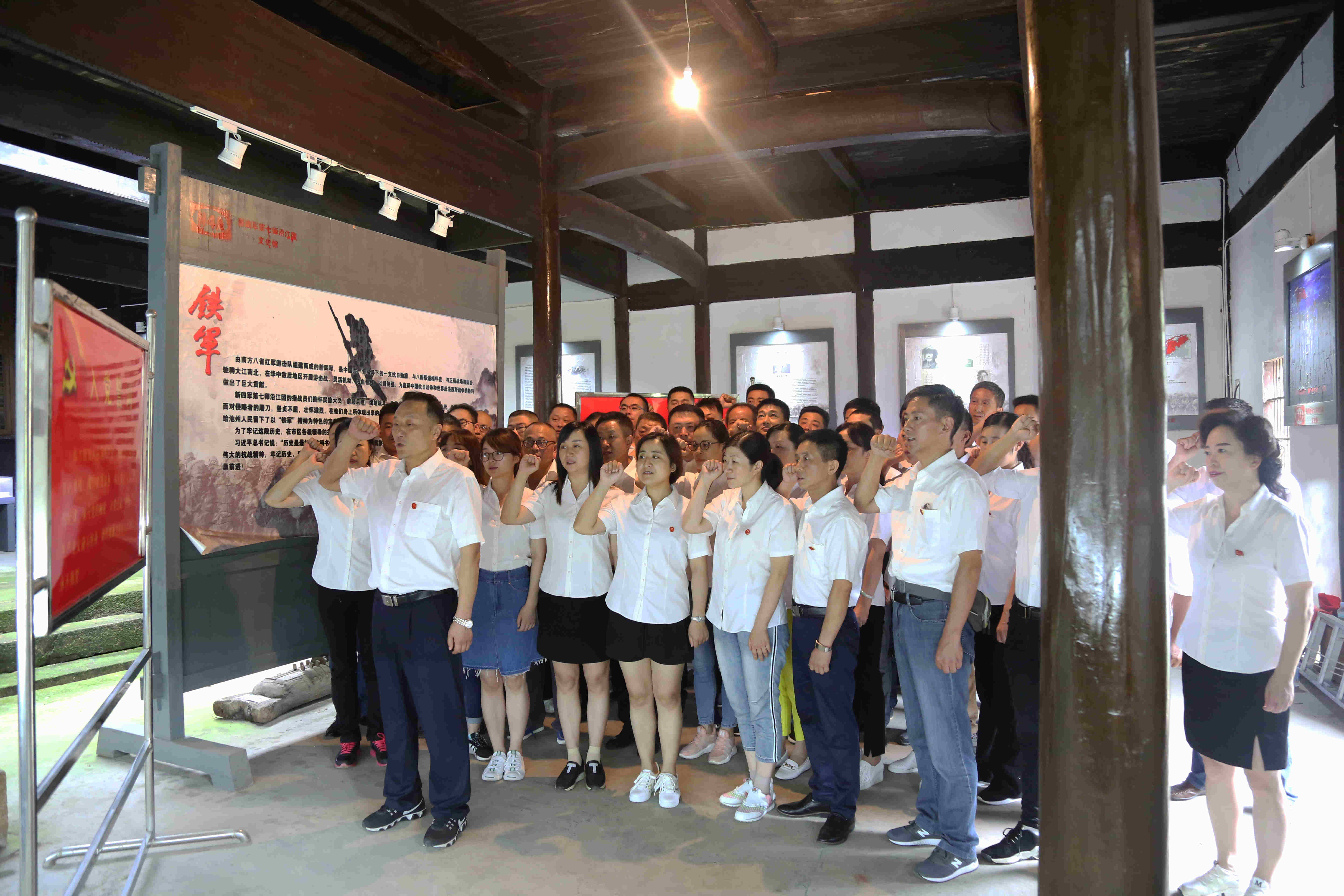 新四軍七師沿江團(tuán)是抗日戰(zhàn)爭(zhēng)時(shí)期堅(jiān)持在皖江地區(qū)進(jìn)行抗日斗爭(zhēng)的主力部隊(duì),在八年抗日斗爭(zhēng)中,第七師沿江團(tuán)在黨的領(lǐng)導(dǎo)下,歷盡艱難曲折,為民族解放戰(zhàn)爭(zhēng)作出了巨大的犧牲,以其輝煌的業(yè)績(jī)載入革命史冊(cè)。在大廳內(nèi),全體黨員在黨委書記何族興的帶領(lǐng)下,面向黨旗莊嚴(yán)宣誓,重溫入黨誓詞,更加堅(jiān)定了為共產(chǎn)主義事業(yè)奮斗終身的理想信念。