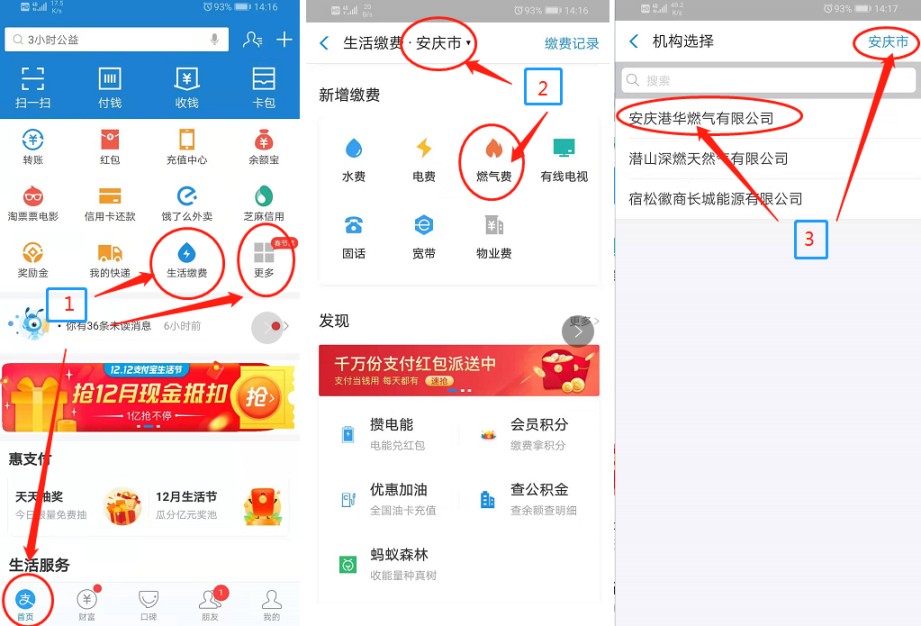 支付寶:打開支付寶,“首頁”-“生活繳費”(或者在“首頁”-“更多”中選擇“生活繳費”),繳納燃?xì)赓M或者預(yù)存氣費。