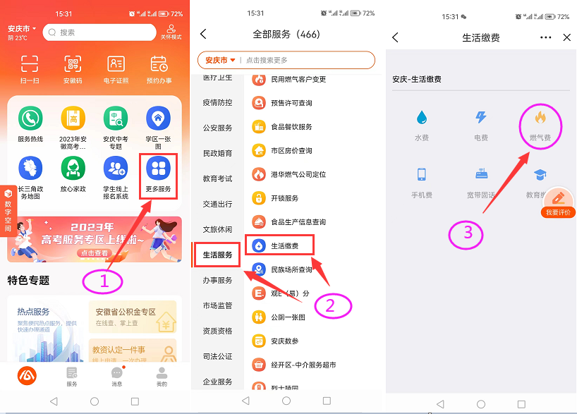 皖事通:安裝并打開皖事通APP,進(jìn)入“更多服務(wù)”-選擇“生活服務(wù)”-“生活繳費”,點擊“燃?xì)赓M繳納”即可繳納燃?xì)赓M或者預(yù)存氣費。