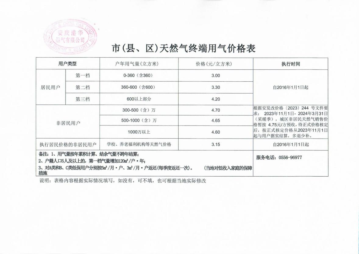 安慶港華規(guī)范收費(fèi)承諾書(含行業(yè)收費(fèi)項(xiàng)目清單及終端用氣價(jià)格表)