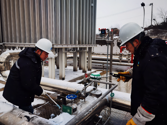 保障輸配勤維護。為保障低溫雨雪天氣下全市生產(chǎn)生活穩(wěn)定用氣,場站運行工高頻次檢查各重要設(shè)備運行情況,細致排查安全問題,一絲不茍確保關(guān)鍵環(huán)節(jié)處于良好運行狀態(tài);巡線探漏人員頂風冒雪,重點加大了人員密集區(qū)域及民生保障關(guān)鍵點的燃氣管網(wǎng)巡查探漏,并對易受低溫影響的管道、閥井、調(diào)壓設(shè)備及時采取包裹棉被、排水等防凍措施。