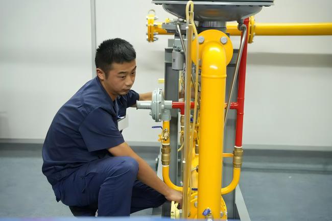 本次競賽分為理論考試和實操競賽兩大部分,內容涵蓋技術方案編制、蒙眼拆裝、工藝系統(tǒng)檢查及故障排除等多項考核內容。理論考試主要檢驗參賽選手對燃氣管道調壓相關知識的掌握情況,而實操競賽則通過模擬真實工作環(huán)境,全面考察選手的實際操作能力和應對突發(fā)情況的能力。在實操競賽中,選手們需要在規(guī)定時間內完成蒙眼拆裝切斷閥、排查調壓器故障并恢復管道壓力等任務,整個過程需準確無誤的完成144個零件的拆裝,并一次性調試合格。比賽現(xiàn)場氣氛緊張而熱烈,選手們全神貫注、爭分奪秒,展現(xiàn)了燃氣行業(yè)職工良好的職業(yè)素養(yǎng)和團隊協(xié)作精神。