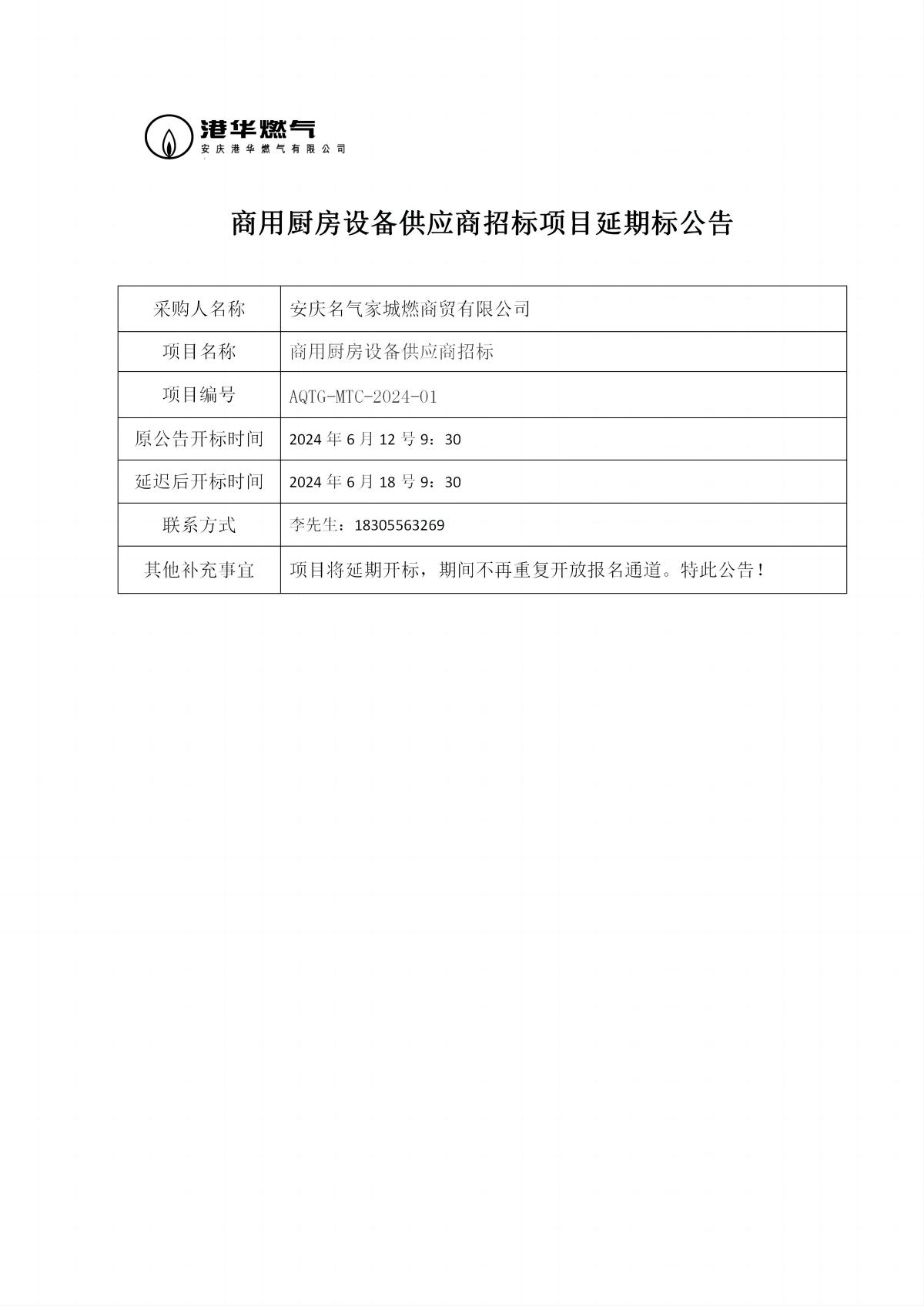 商用廚房設(shè)備供應(yīng)商招標(biāo)項目延期標(biāo)公告