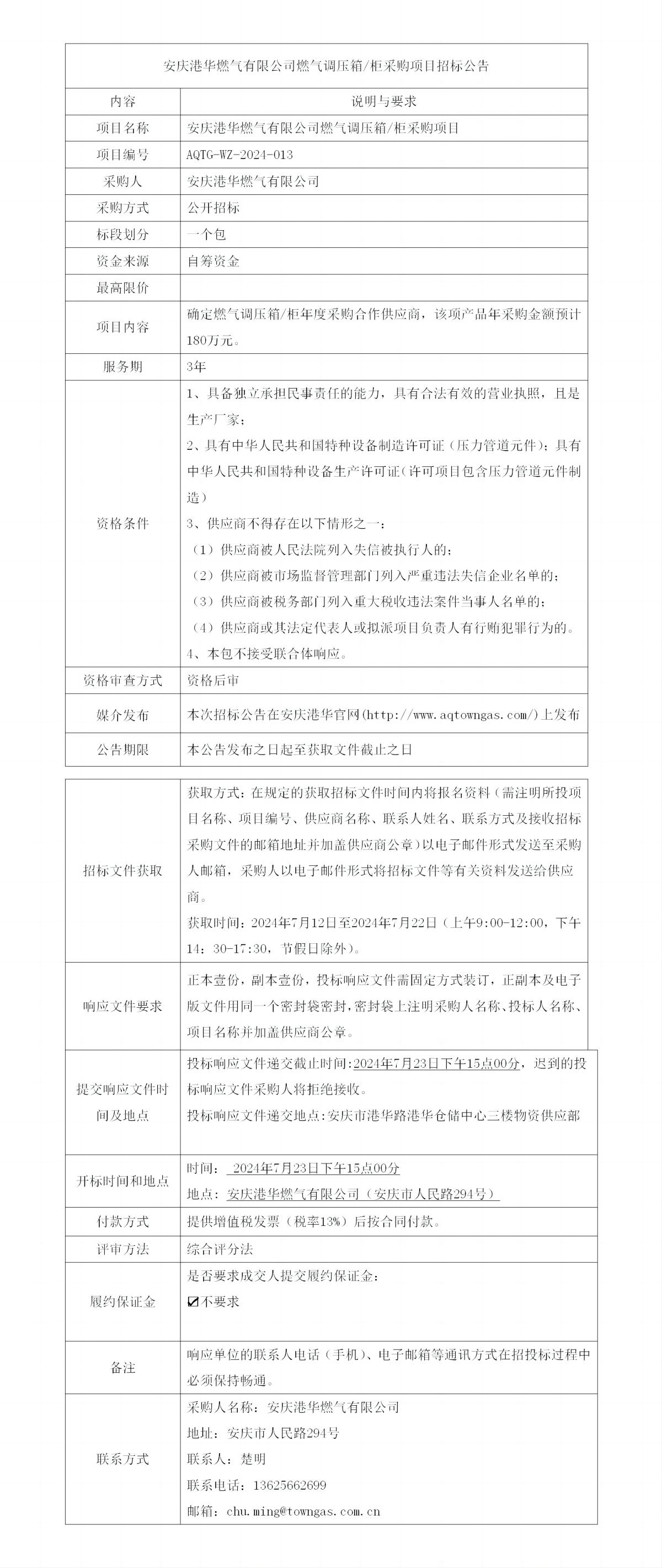 安慶港華燃?xì)庥邢薰救細(xì)庹{(diào)壓箱/柜采購(gòu)項(xiàng)目招標(biāo)公告