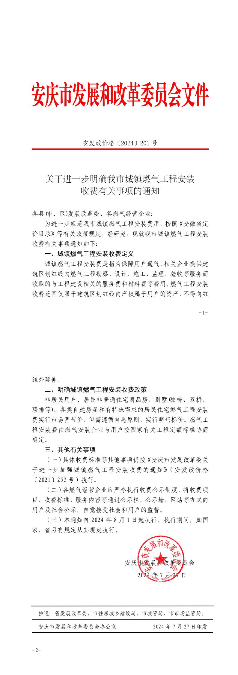 關于進一步明確我市城鎮(zhèn)燃氣工程安裝收費有關事項的通知