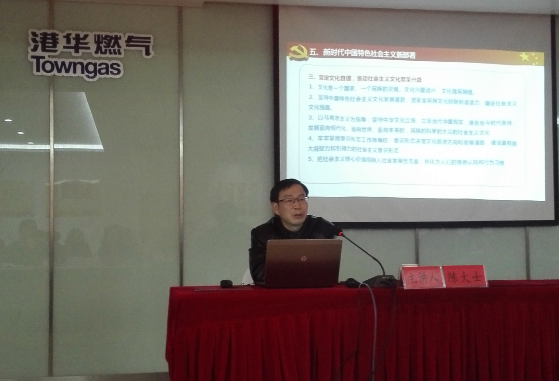 11月29日下午,市委講師團學(xué)習(xí)宣傳貫徹黨的十九大精神宣講報告會在安慶港華會議室舉行,市委講師團副團長陳大士作宣講報告。安慶港華黨委班子成員、公司黨員共60余人聆聽了宣講。